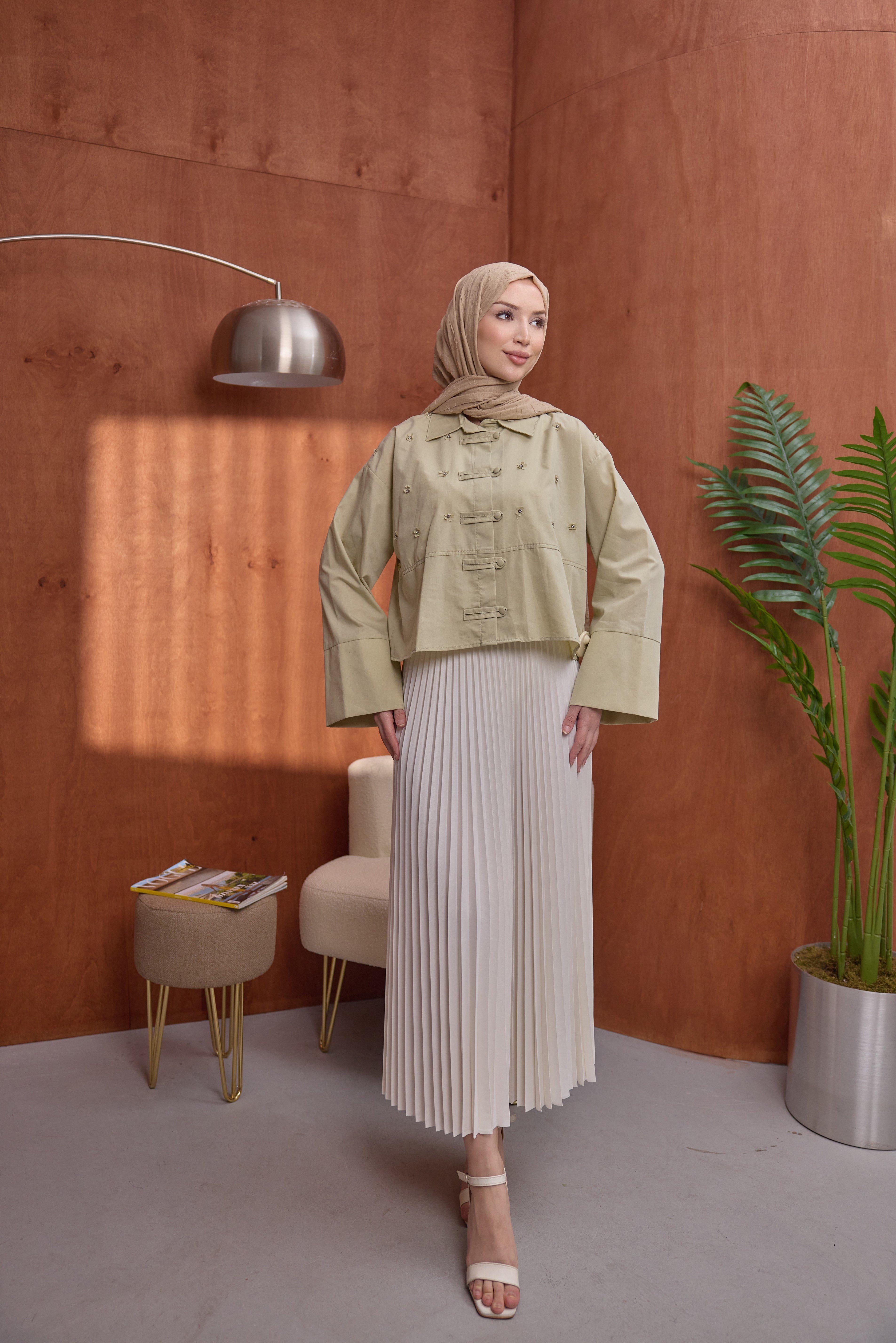 Çiçekli Gömlek Yeşil (81265)