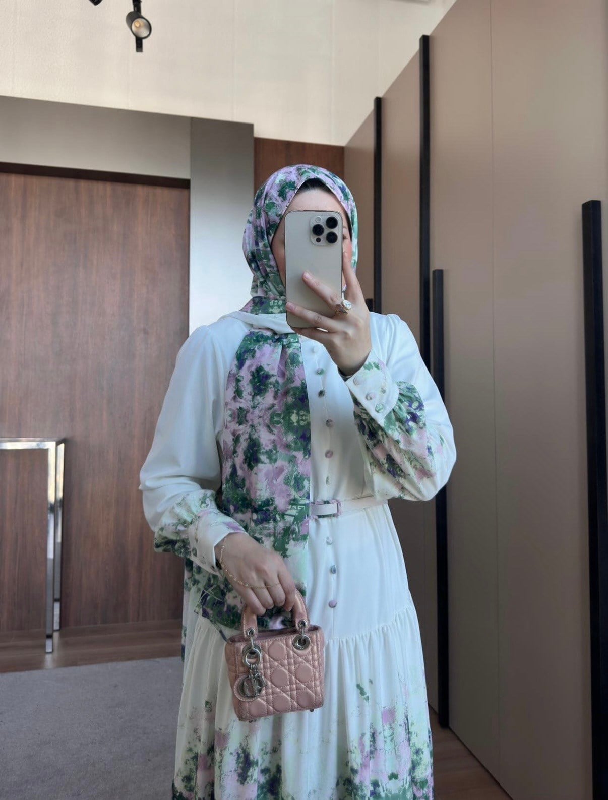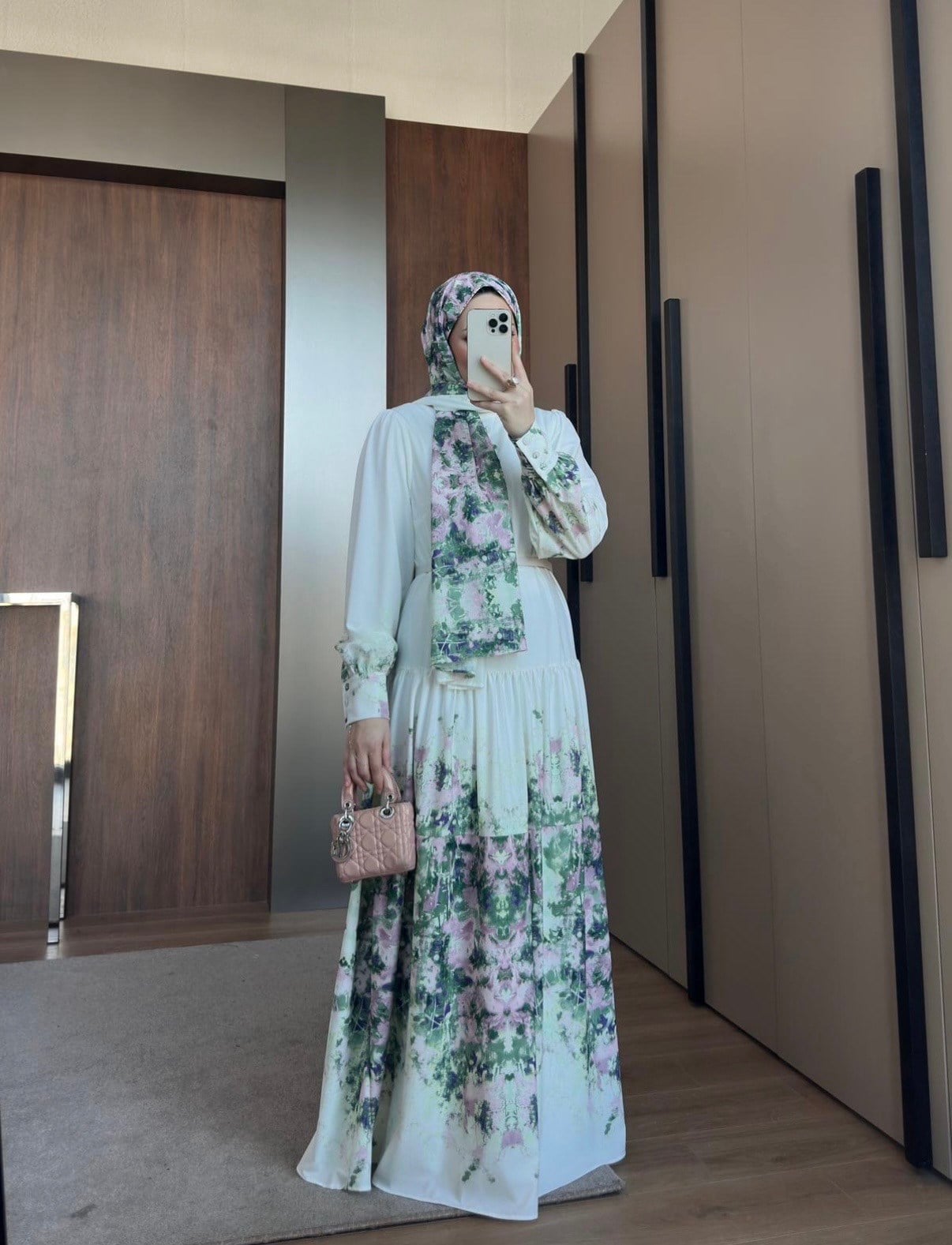 Desenli Elbise Pudra (26094)