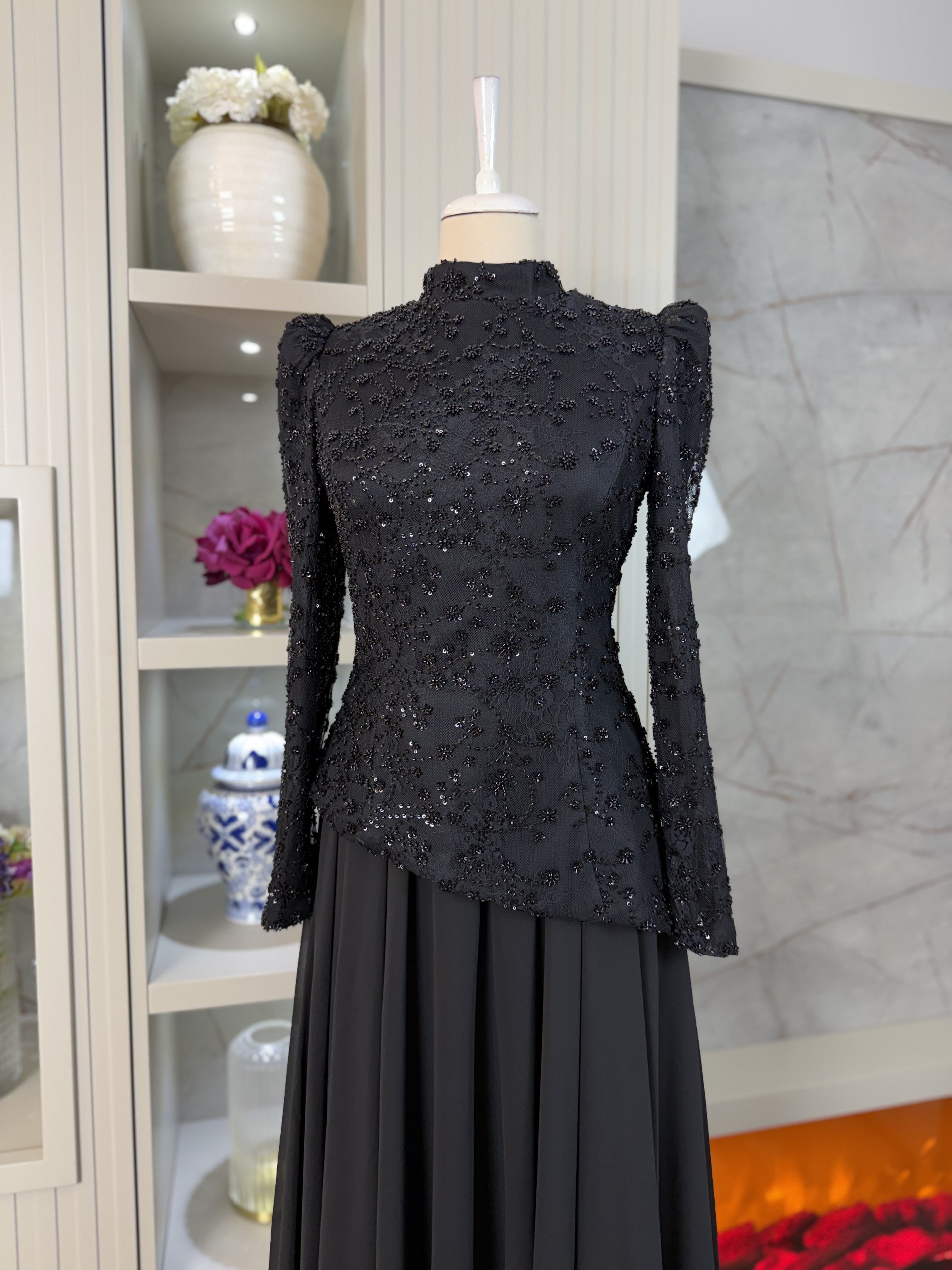 İpek Abiye Siyah (4854)