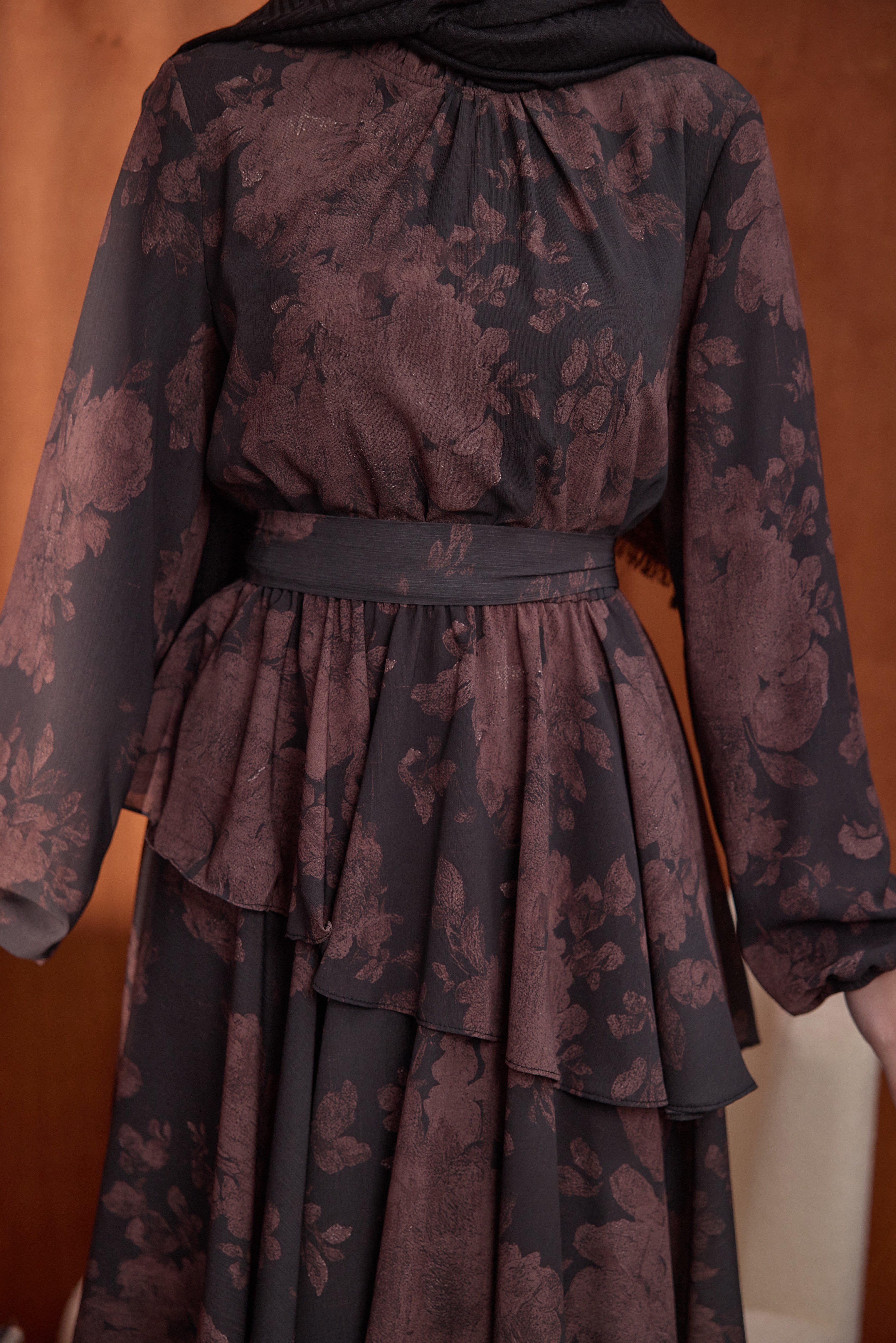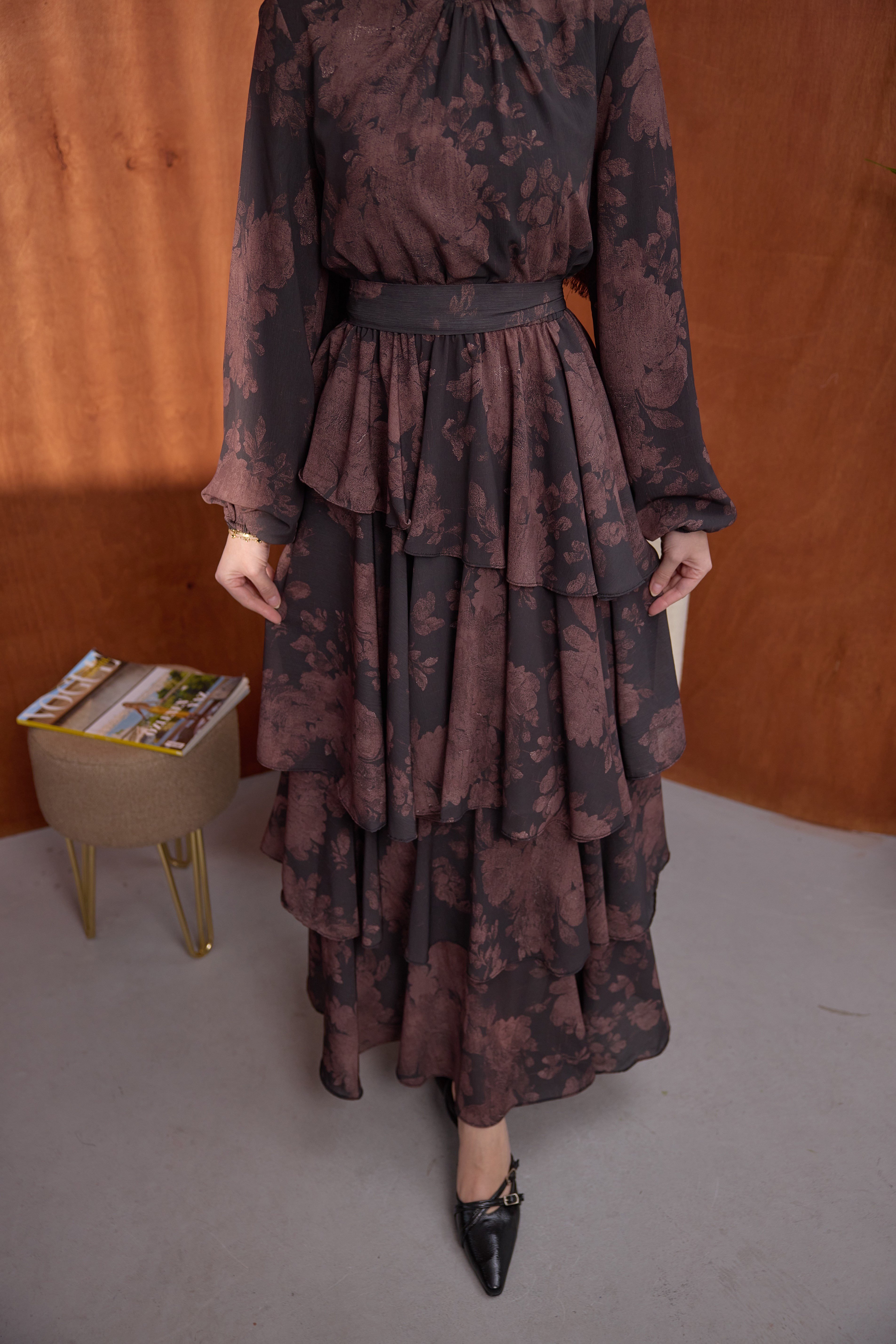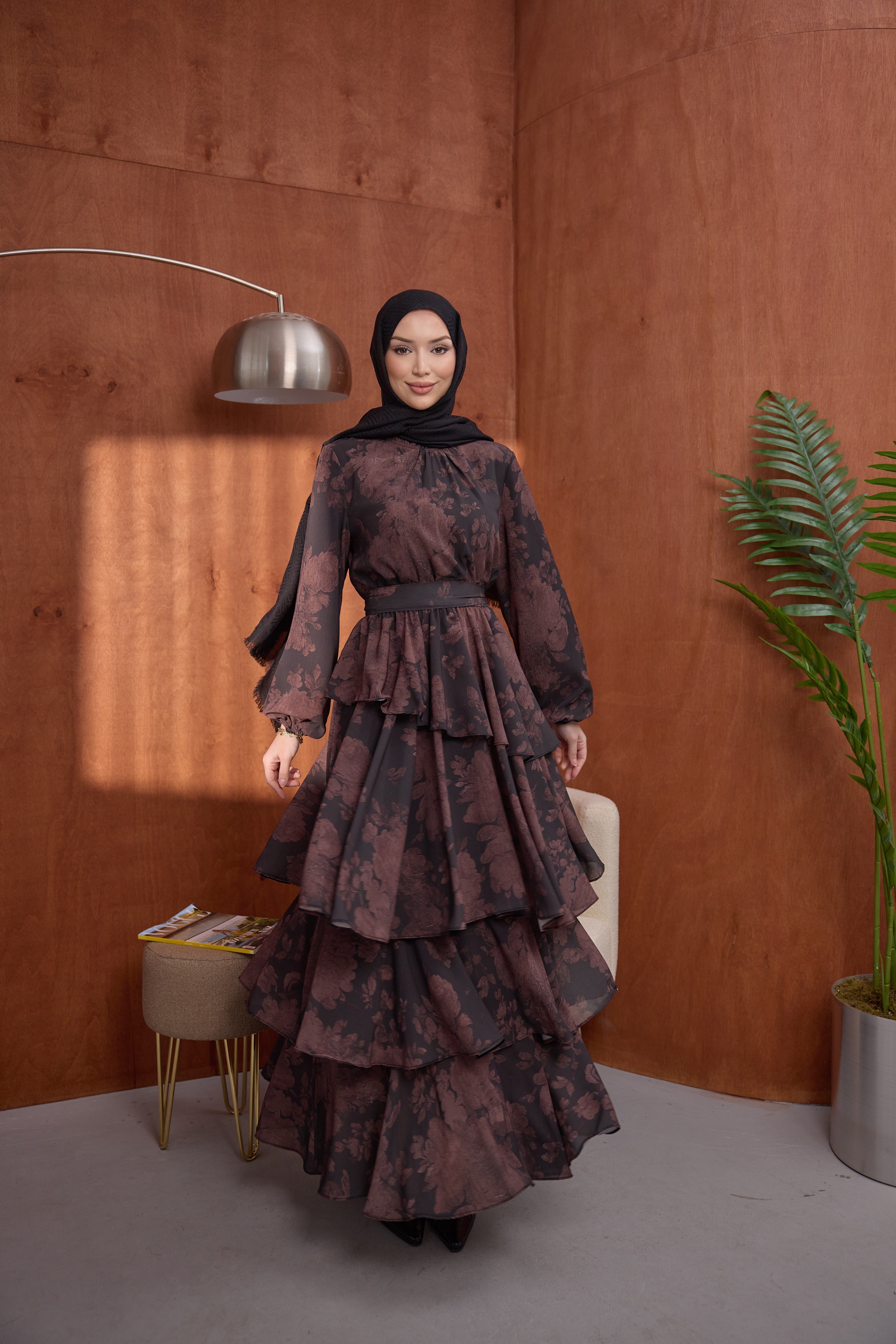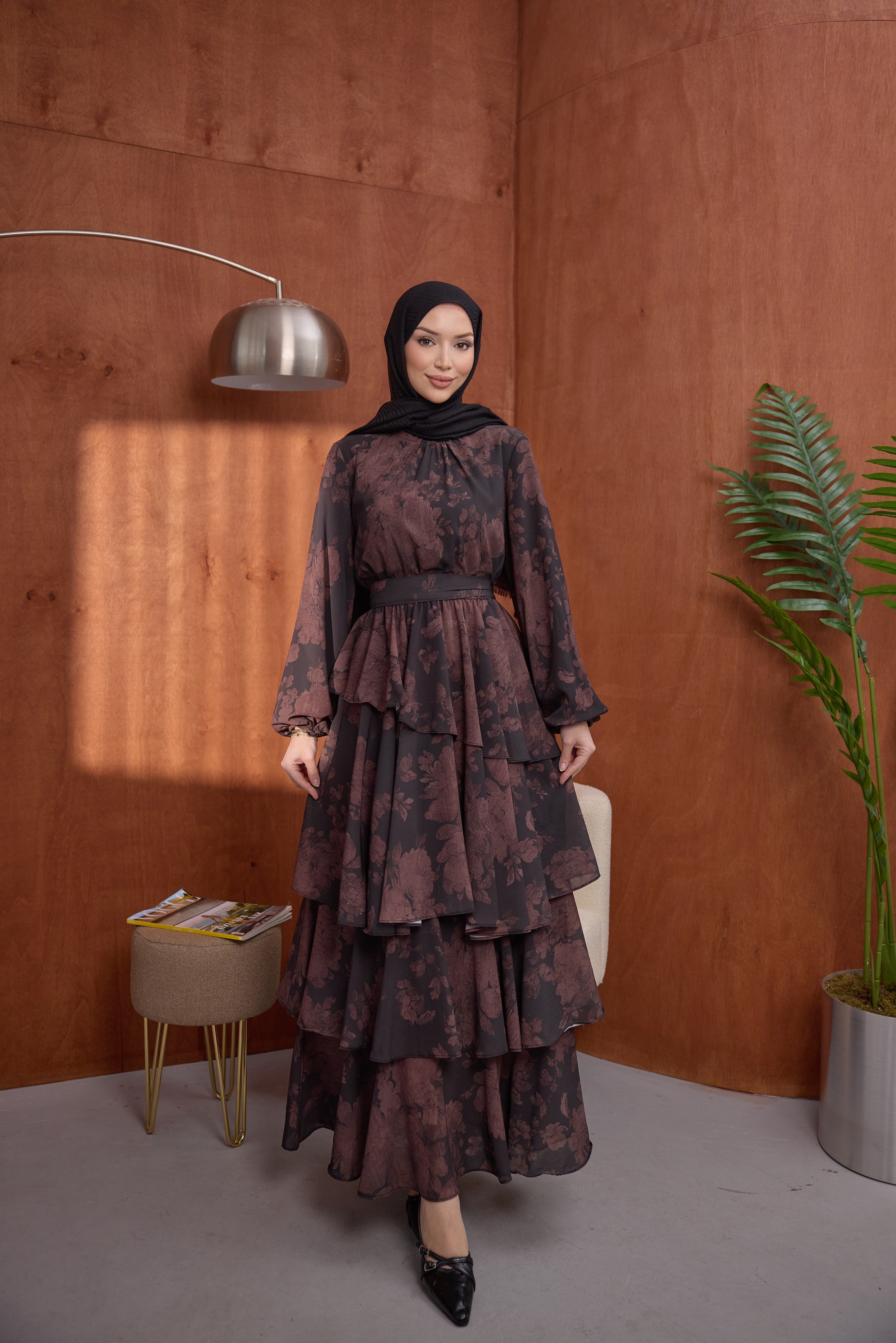 Kat Kat Desenli Elbise Kahve (1519)