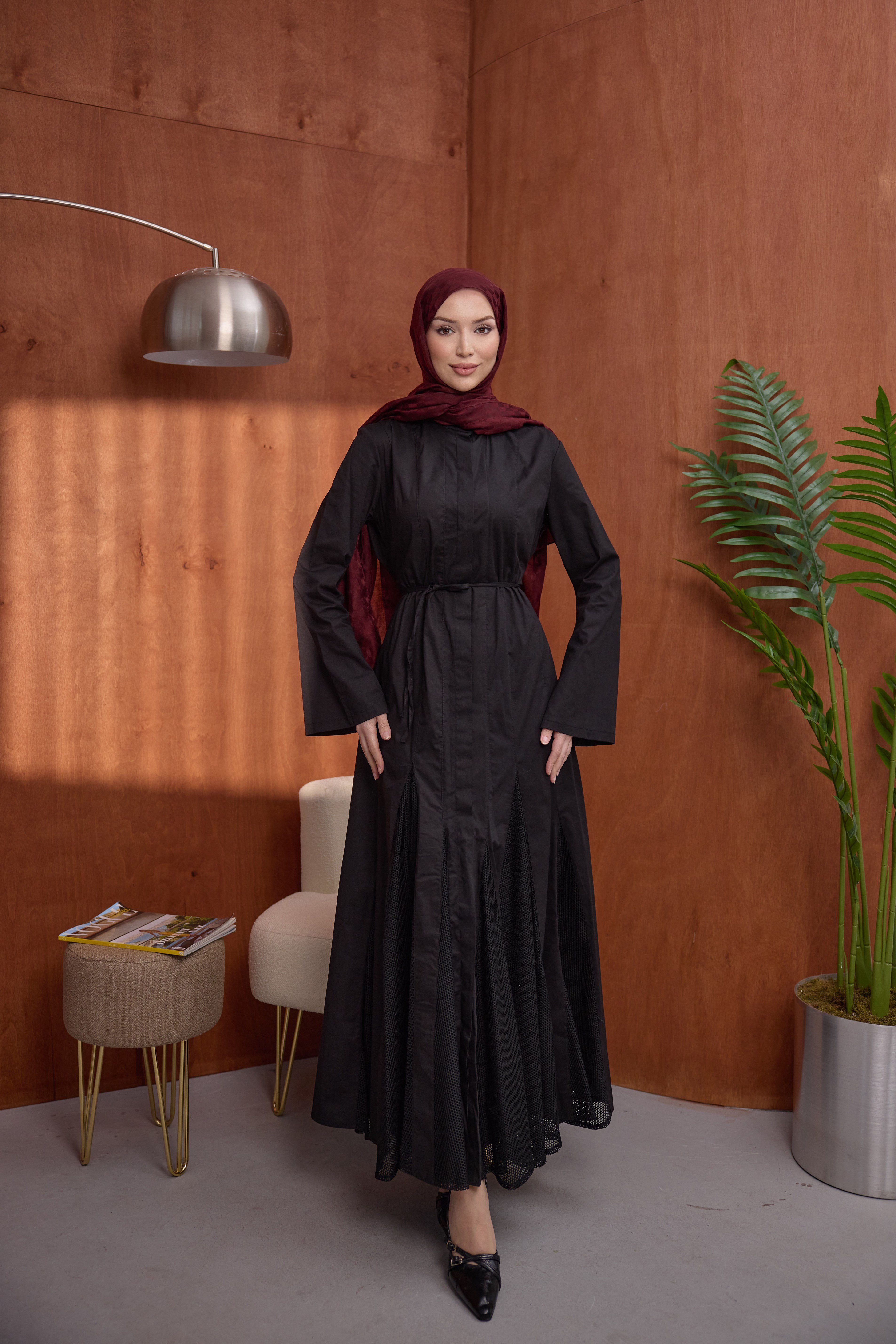 Poplin Fileli Elbise Siyah (5154)